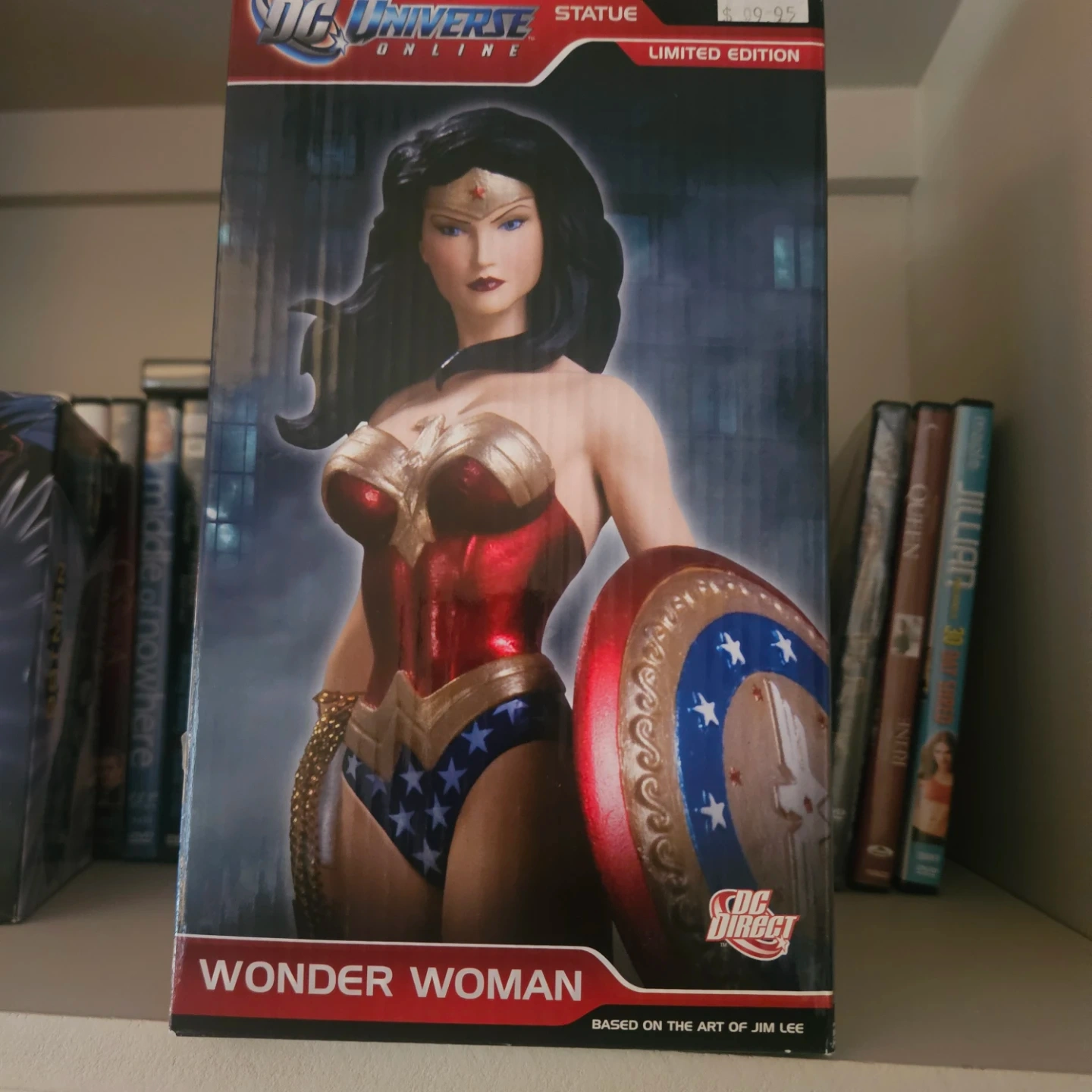 Selling a DC Universe Wonder Woman statue, a limited edition piece! This hand-painted, cold-cast porcelain statue measures approximately 7.8" tall, 4.5" wide, and 3.5" deep. It's based on the art of Jim Lee and is number 1478 of 6000. A great collectible for any Wonder Woman fan