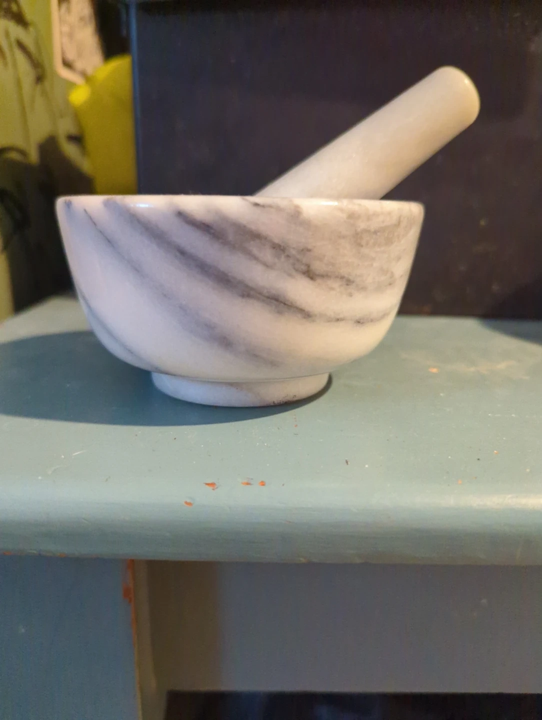 Selling a marble mortar and pestle set! It's perfect for grinding herbs and spices. The set is made of beautiful marble, adding a touch of elegance to your kitchen. It's in great condition and ready for a new home