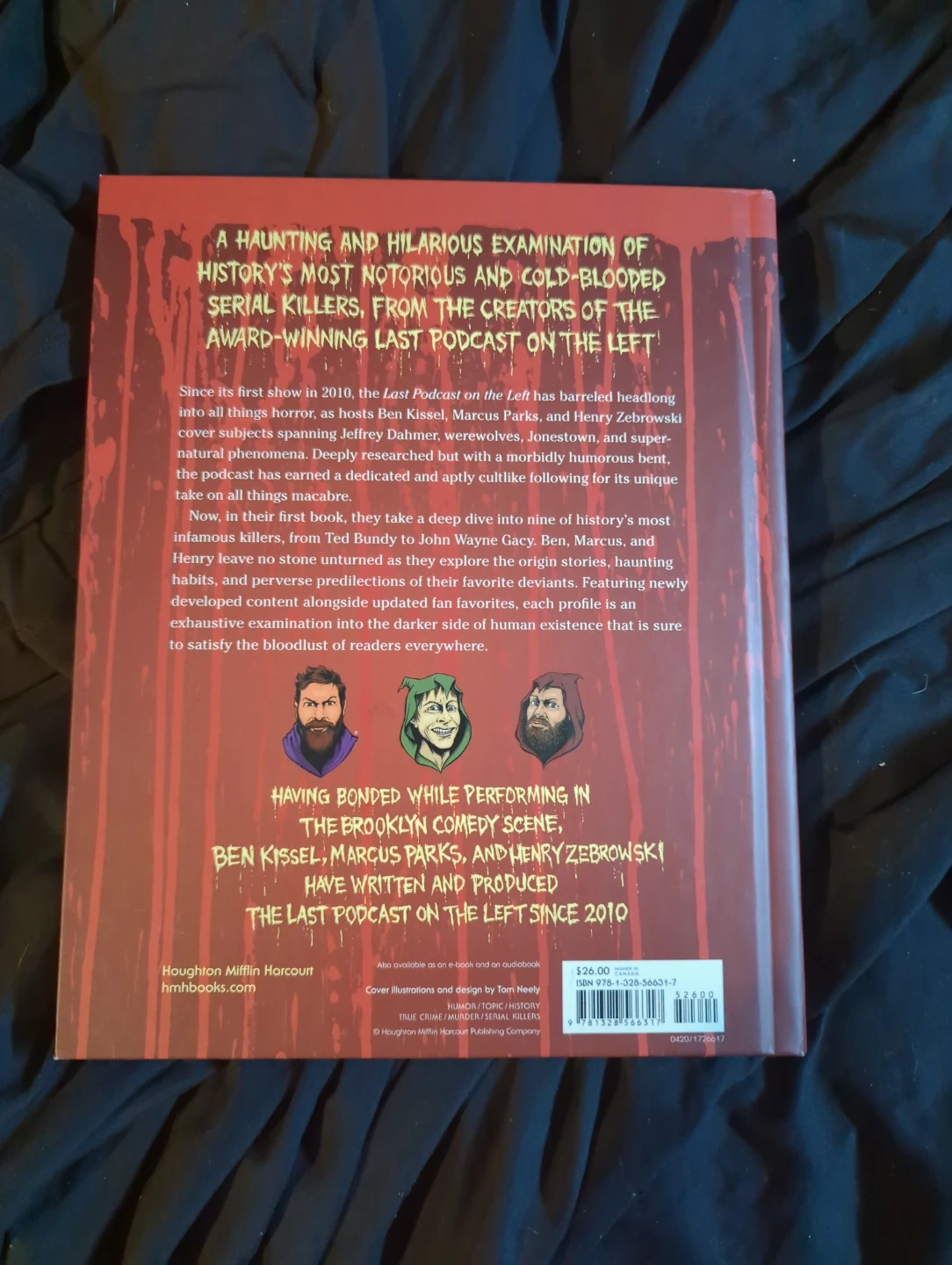 Selling The Last Book on the Left by The Last Podcast on the Left! It's a collection of stories of murder and mayhem from history's most notorious serial killers. A haunting and hilarious examination of history's most notorious and cold-blooded serial killers from the creators of the award-winning Last Podcast on the Left