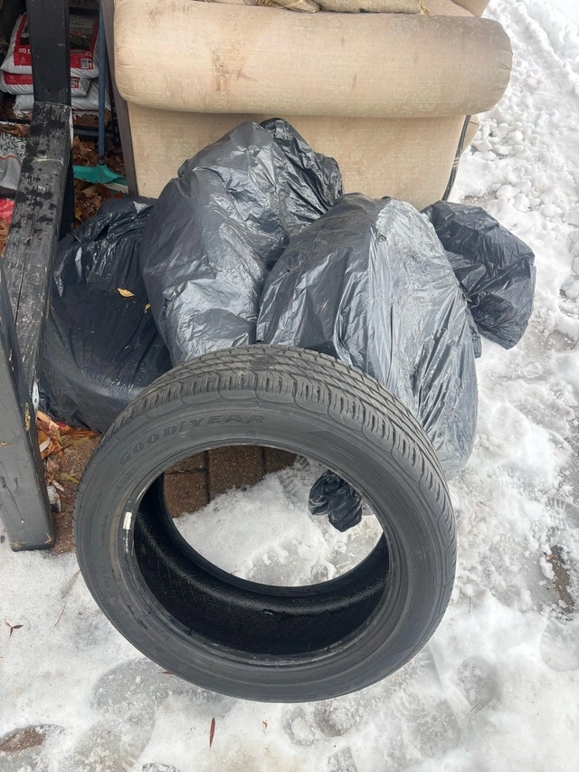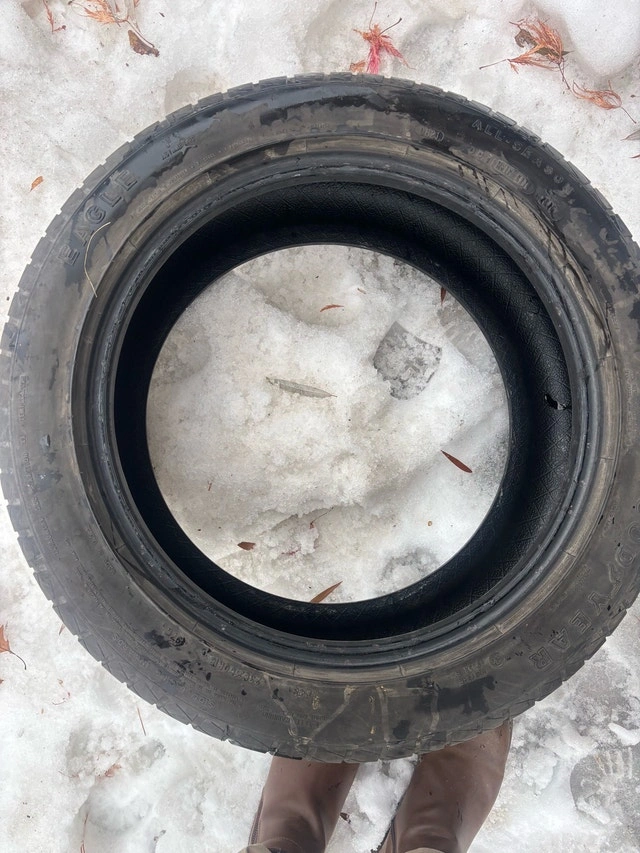 I am selling a set of four Goodyear Eagle All-Season tires, size 235/50R18, suitable for various vehicles. These tires are used and their condition reflects typical wear, but they still offer reliable performance for everyday driving.