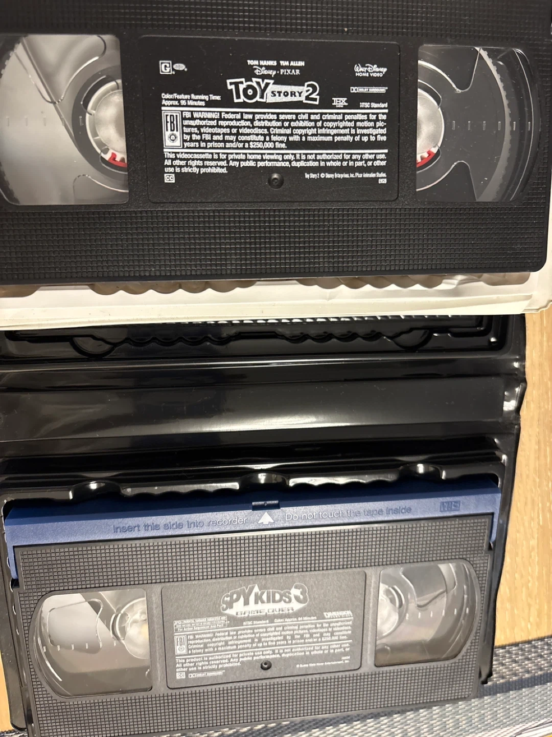 Selling two VHS tapes: Toy Story 2 and Spy Kids 3. Both in good condition and ready for your collection!