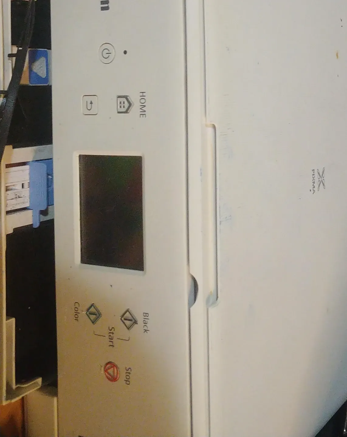 Selling a Canon Pixma printer. It has buttons for colour and black printing, as well as a home button. It has some signs of use.