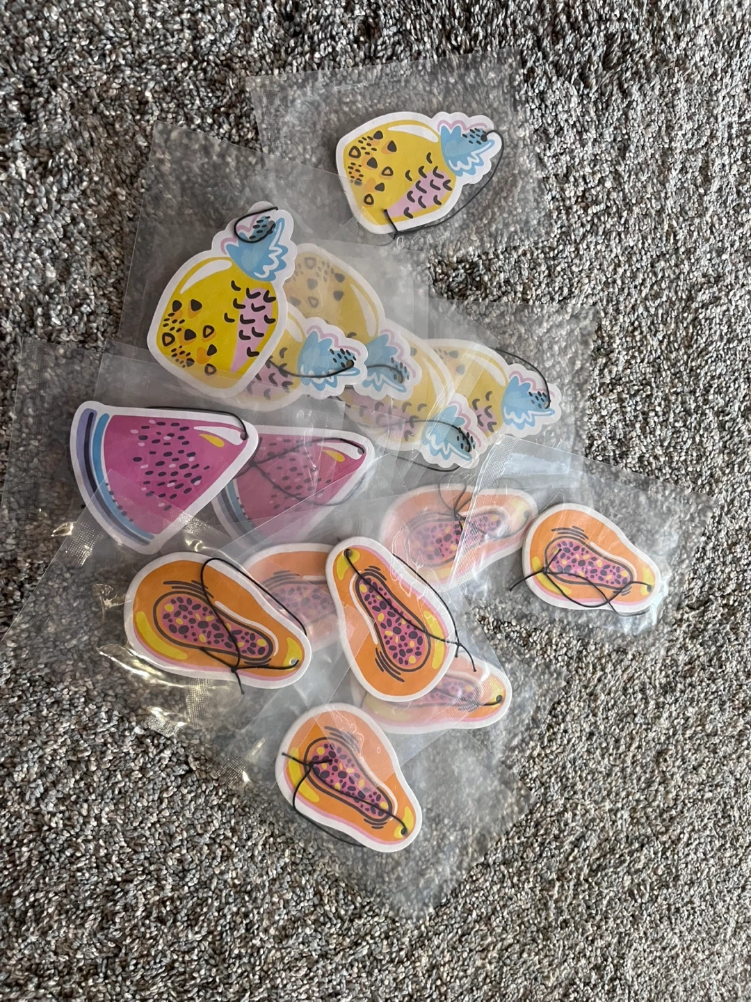 Selling a bunch of cute fruit air fresheners ! There's pineapple, watermelon and papaya designs.
