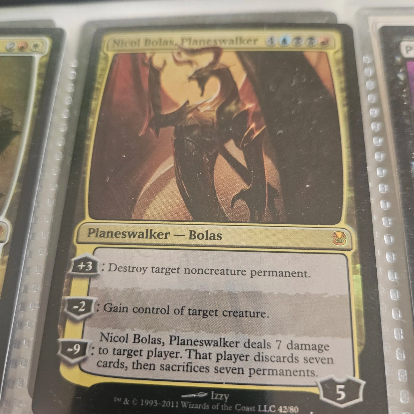 Selling a Nicol Bolas, Planeswalker card from Magic: The Gathering. Card allows you to destroy target noncreature permanent, gain control of target creature, or deal 7 damage to target player