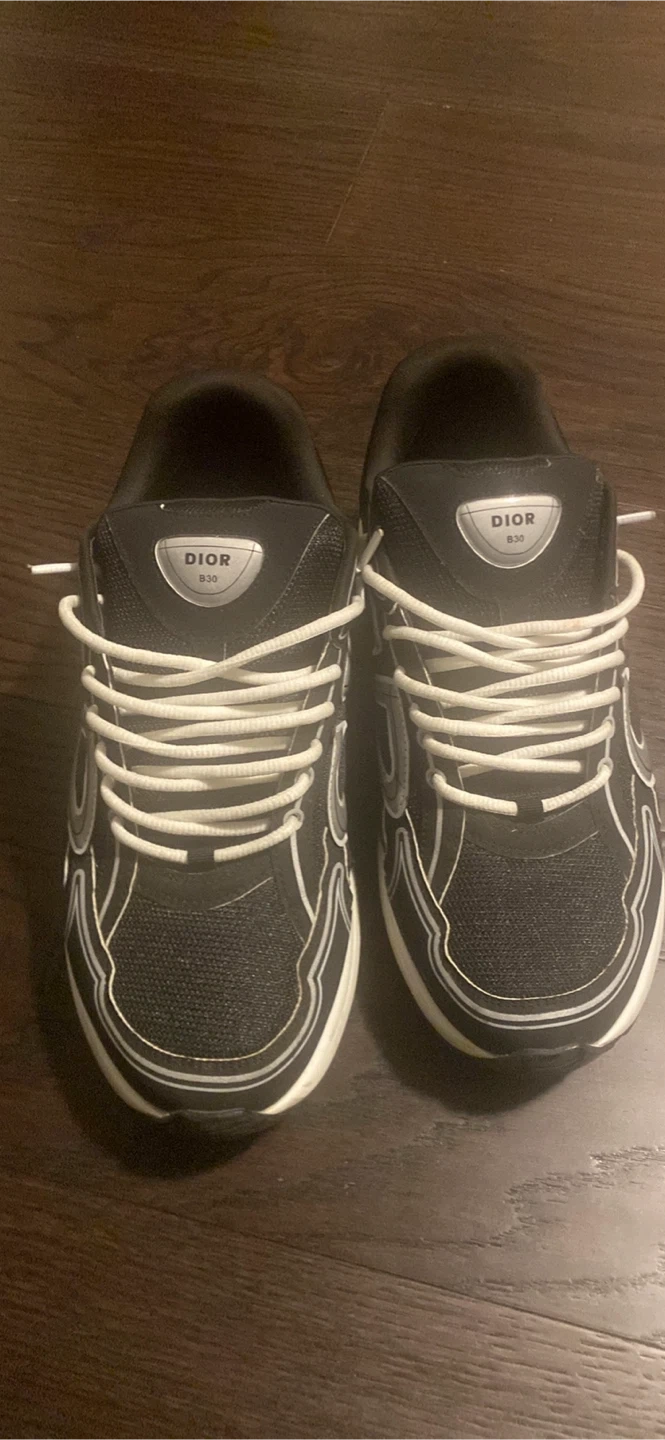 Selling a pair of Dior B30 sneakers in black. They're in great shape and ready for a new owner! The shoes feature the Dior logo and a sleek design