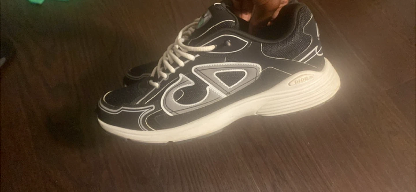 Selling a pair of Dior B30 sneakers in black. They're in great shape and ready for a new owner! The shoes feature the Dior logo and a sleek design