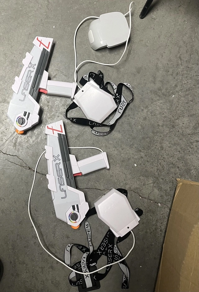 Get ready for thrilling laser tag battles with this Laser X two-player set! This used set includes everything you need for head-to-head action right out of the box. Each player gets a laser blaster and a receiver vest, allowing for exciting games in the dark or daylight. Unfortunately, I don't have the original packaging or instructions, but there are videos online that help explain game play. I'm asking $35 for the set. Please check out my other ads