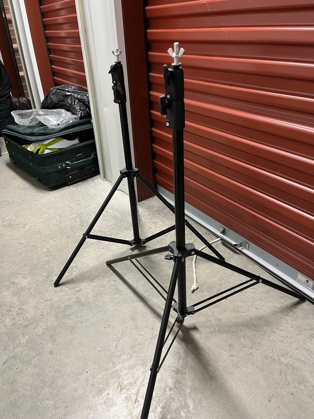 These light stands are great for photography or videography. They've hardly been used, are fully functional and ready to use. Specifications: