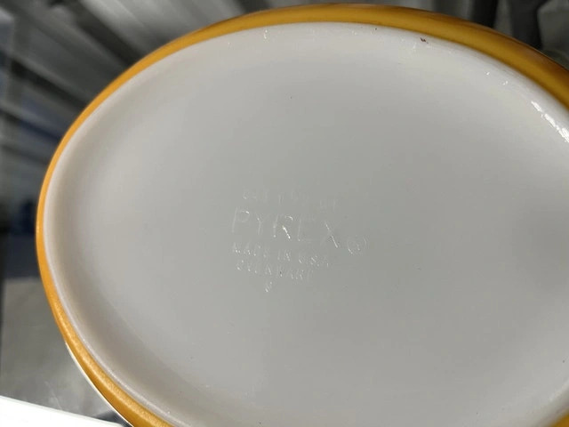 Pyrex Casserole Dish, perfect for your baking needs! The dish is used and in great condition, ready for a new home. The vibrant yellow colour adds a pop of sunshine to your kitchen. * Oval shape * Yellow exterior * Classic Pyrex design If the ad's still up, it's still available!