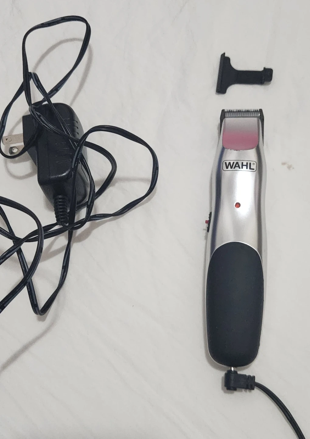 Selling a Wahl Beard And Mustache Trimmer in great condition! It comes with the charger and one attachment. The clipper is silver and black. Originally bought for $31.59