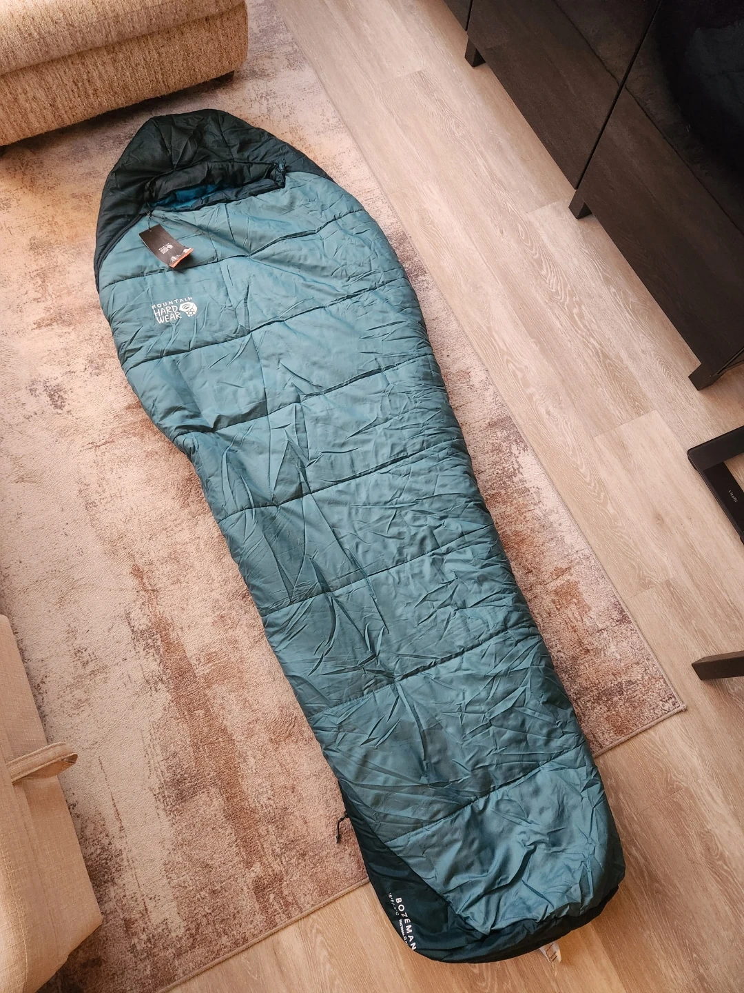 Selling a Mountain Hardwear Bozeman sleeping bag, rated to 15F/-9C. This sleeping bag features Thermal.Q recycled insulation and a full-length zipper with double sliders. It's designed for a comfortable mummy cut. Used a single time, basically new.