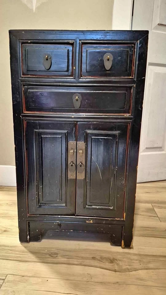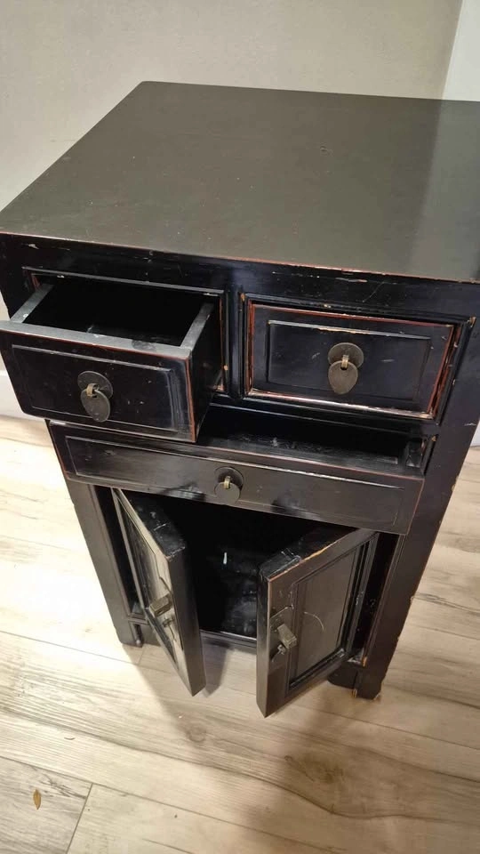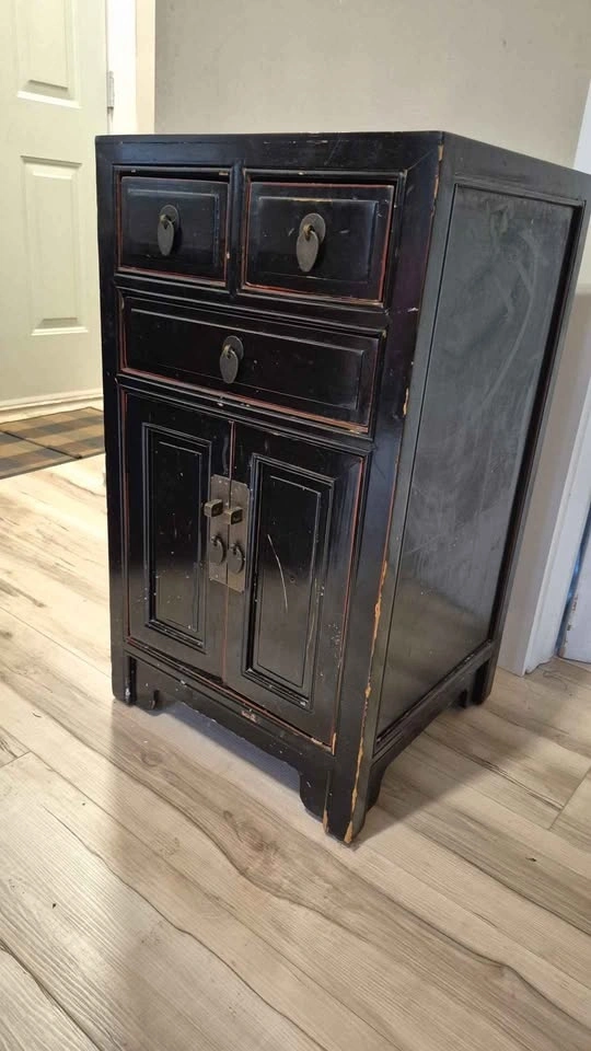 Buy & SellChinese black lacquered cabinetChinese black lacquered cabinet$25Chinese distressed finish, lacquered cabinet, solid wood H=30" W=17.5" D=16.5" 3 drawers Pick up Queensway and IslingtonWHERE TO MEETCheck LocationView MapSELLERverifiedDeirdreThe Queensway731 review0 chats·2 favorites·19 viewsSEND CHAT TO SELLERHi Deirdre! I’m interested in your listing.Hi Deirdre! I’m interested in your listing.Get the Karrot app to chatSign In to chat