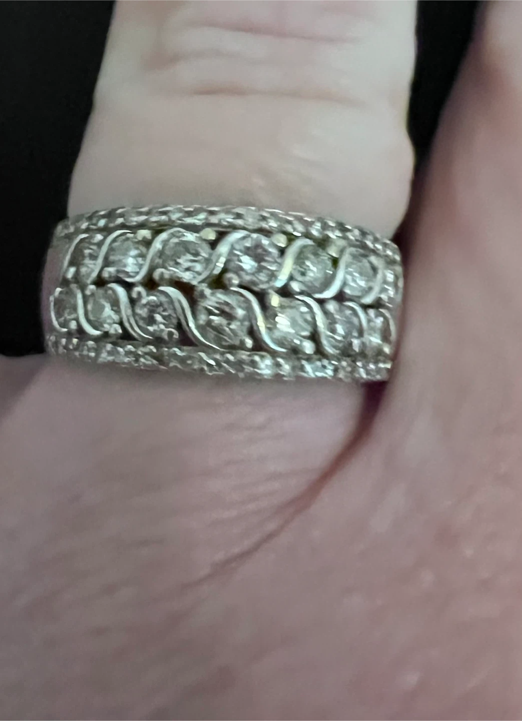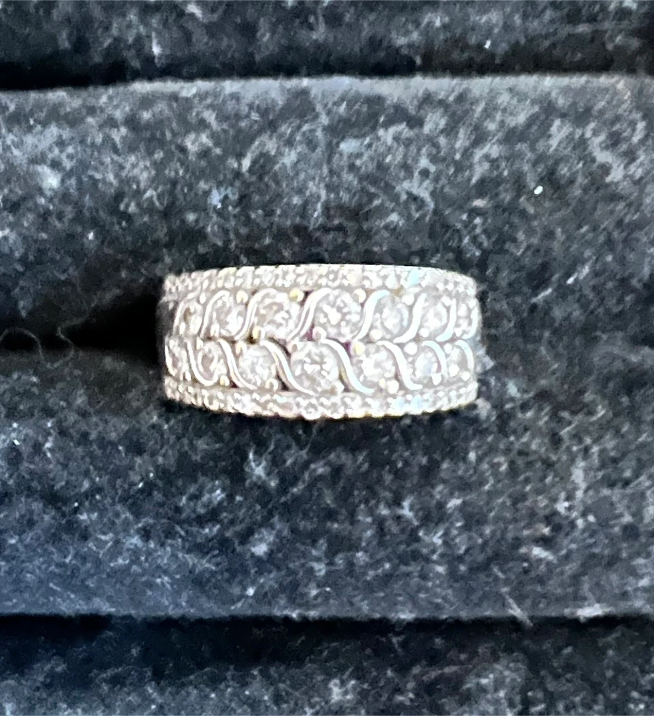 Selling a beautiful diamond ring. It features an intricate design with sparkling stones. Perfect for adding a touch of elegance to any outfit. Total diamonds approx. 1 ct.