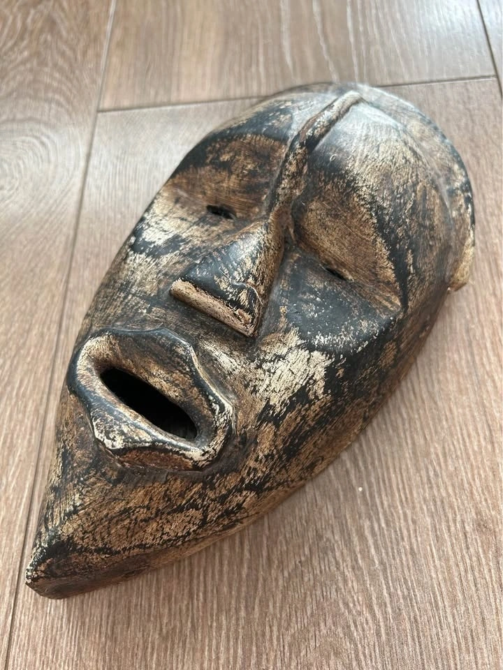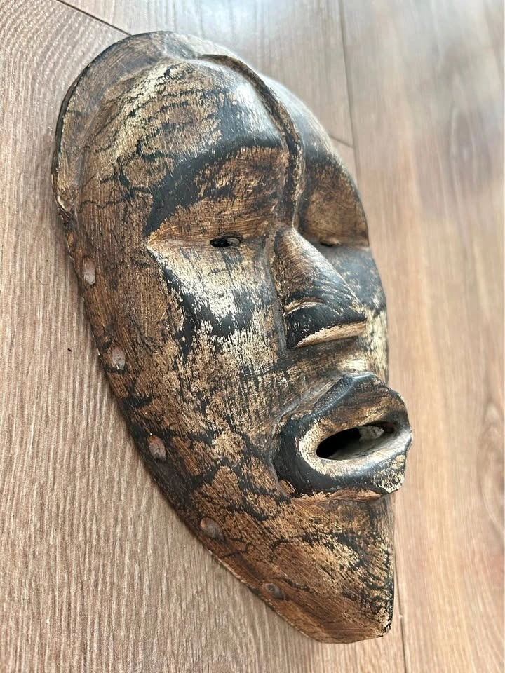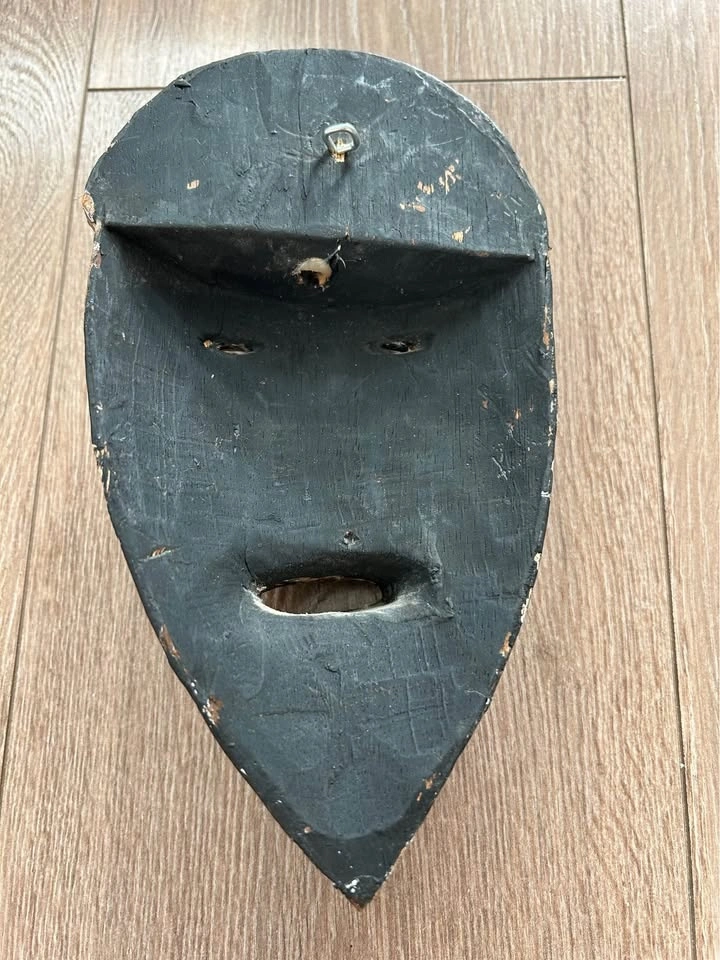 This mask was made as decorative art rather than a ceremonial object, typical of mid-to-late 20th century export carvings inspired by traditional tribal aesthetics. The surface patina and worn finish add visual depth and authenticity, making it especially appealing for collectors of rustic or global décor.