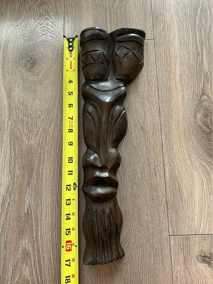 Vintage Wood Tribal Mask - Tall Statement Décor 17”