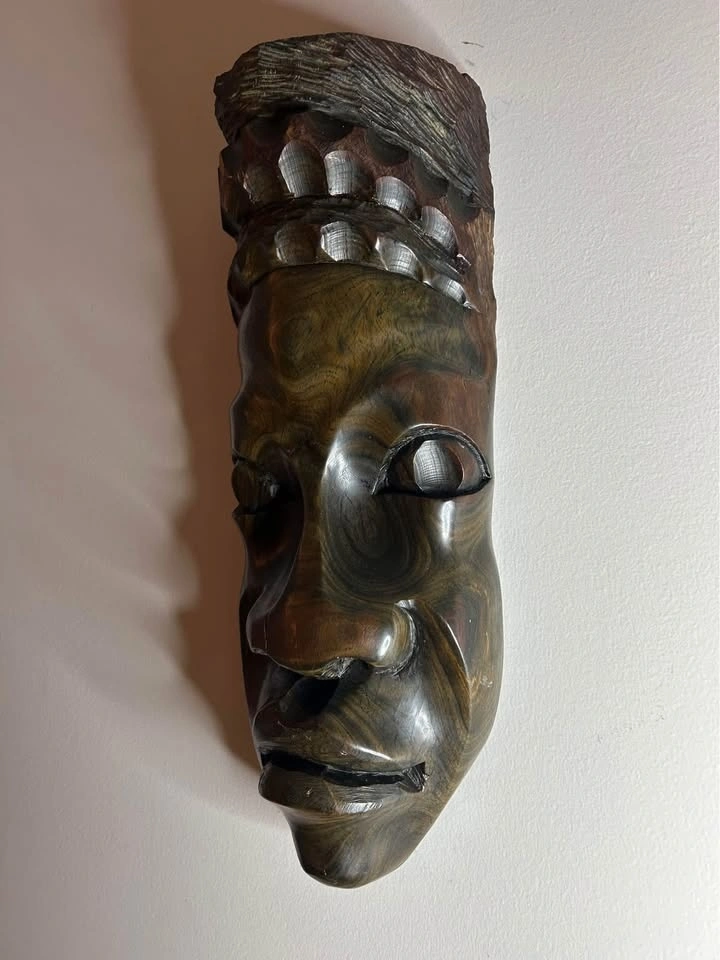 Hand-Carved African Wooden Mask – Vintage Tribal Style Wall Deco
