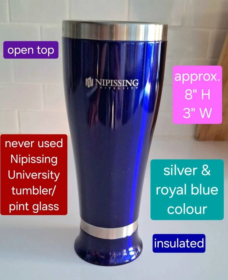 2 NEVER USED Nipissing University insulated tumblers - recently rediscovered wrapped up in storage!
