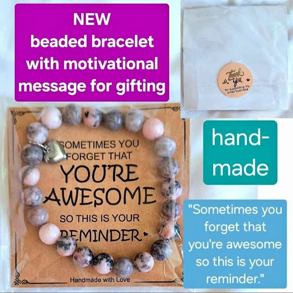 NEW still wrapped beaded bracelet that comes with motivational message: "Sometimes you forget that YOU'RE AWESOME, so this is your reminder" - perfect for gifting!