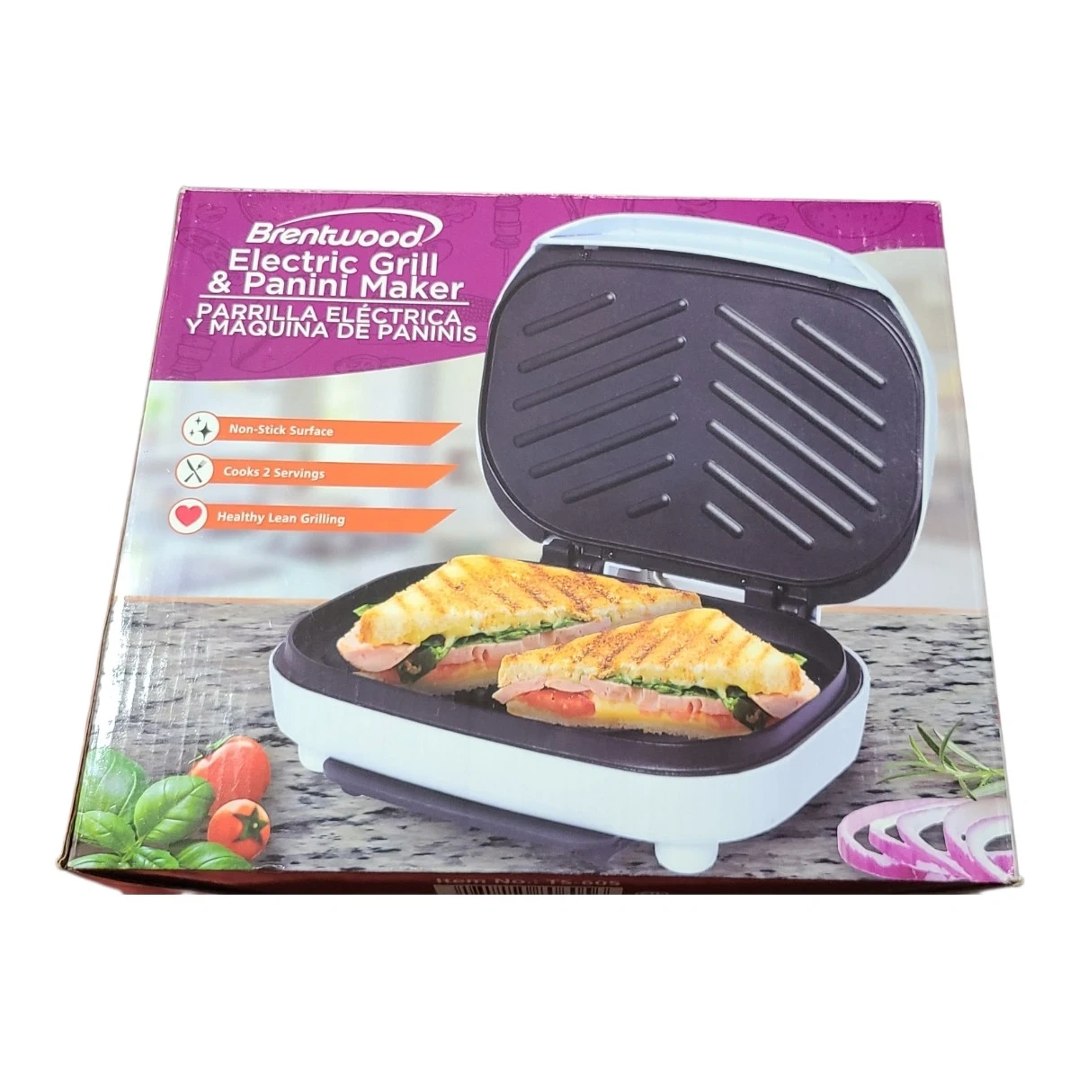Selling a brand new Brentwood Electric Grill and Panini Maker, still in its original box! This grill features a non-stick surface and can cook 2 servings at once, perfect for healthy lean grilling. It also has fast even heat with 750 Watts, a cool-touch housing, and an easy-to-clean drip tray. Its space-saving compact design makes it easy to store when not in use.