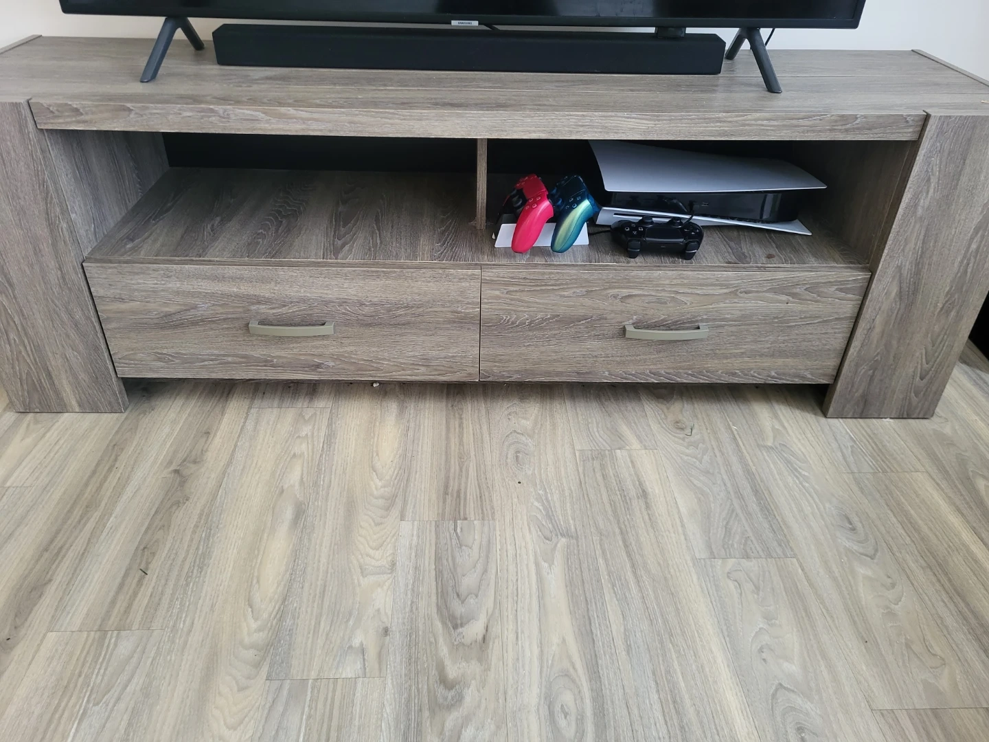 Selling a wood grain TV stand. It's in great condition and would look great in any living room or entertainment area! It features drawers for storage and open shelving for consoles or decor