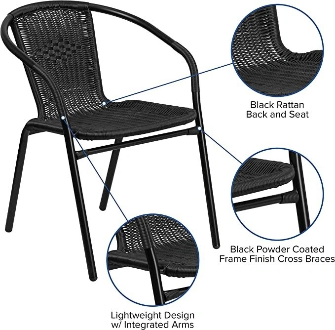 2 Pack Black Rattan Indoor-Outdoor Stackable Chairs - 4 Sets Of 2 Available.