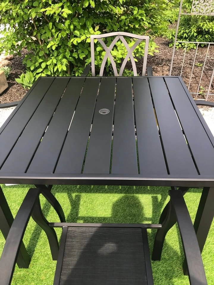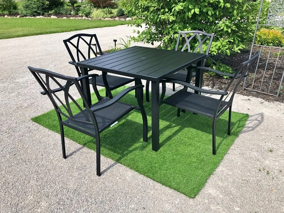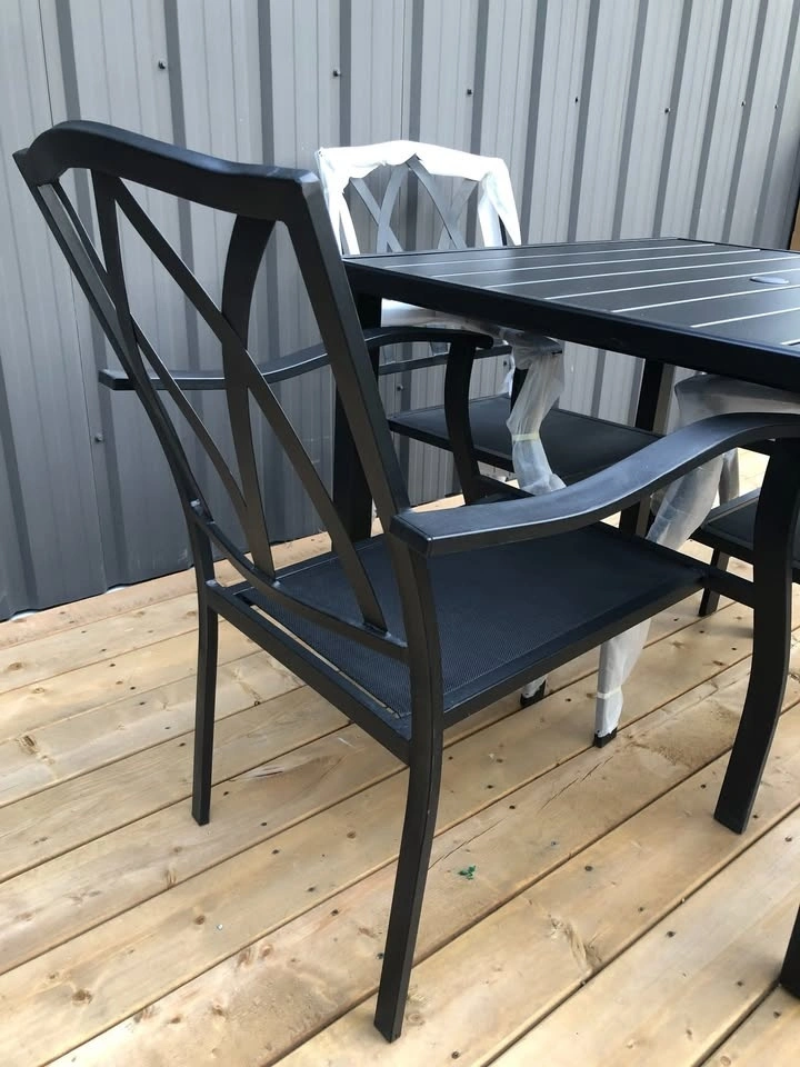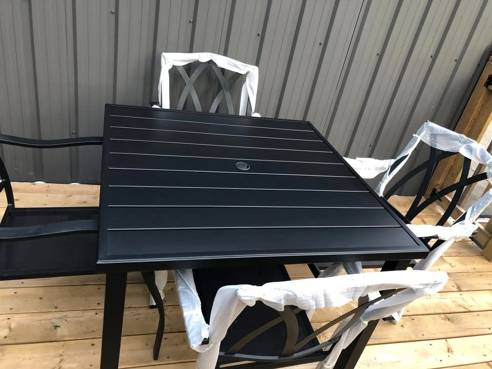 Brand new square table and 4 new chairs with mesh seating. Table is 38.5”x38.5” and 28.5” tall. Chairs can be used with or without cushions. (No cushions included but we have a large selection of cushions for sale) - $600. Lots of cushions and other patio décor items available as well. Lots of chairs available separately at $120 per chair but only one table left in this model. All left from closing staging business. NEW! Price is FIRM! Pick up North West Barrie. Cash or e-transfer.