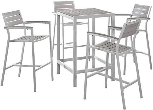 LexMod Patio Dining Set, White/Gray - 2 SETS LEFT!