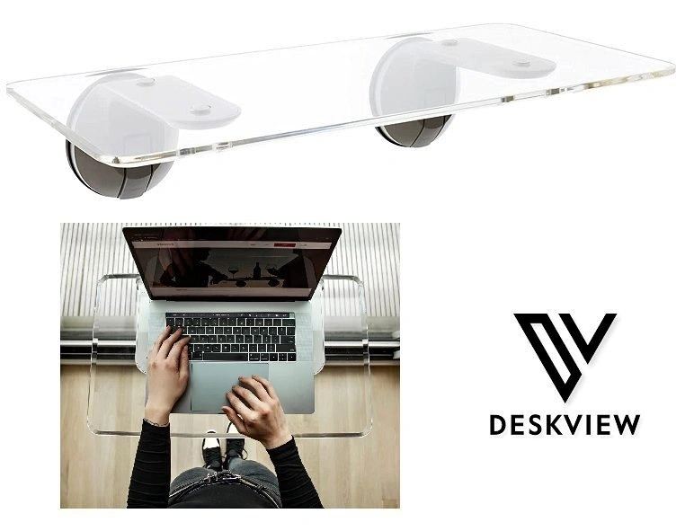Brand new! DeskView Premium Standing Desk - Portable & Height Adjustable Tempered Glass Window-Mounted Stand Up Desk - Laptop and Computer Standing Desk - 10 Second Tool-Free Install - Polished Clear Acrylic.