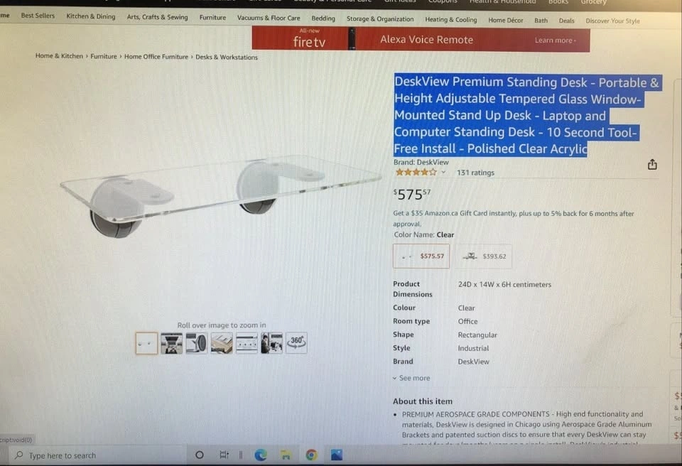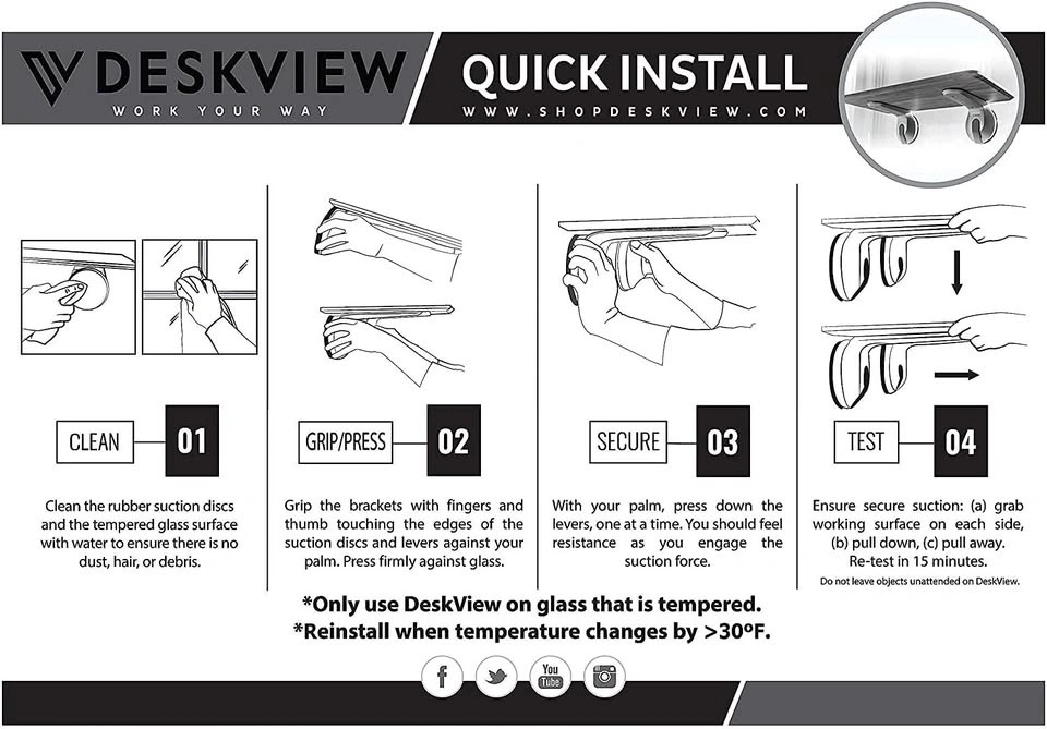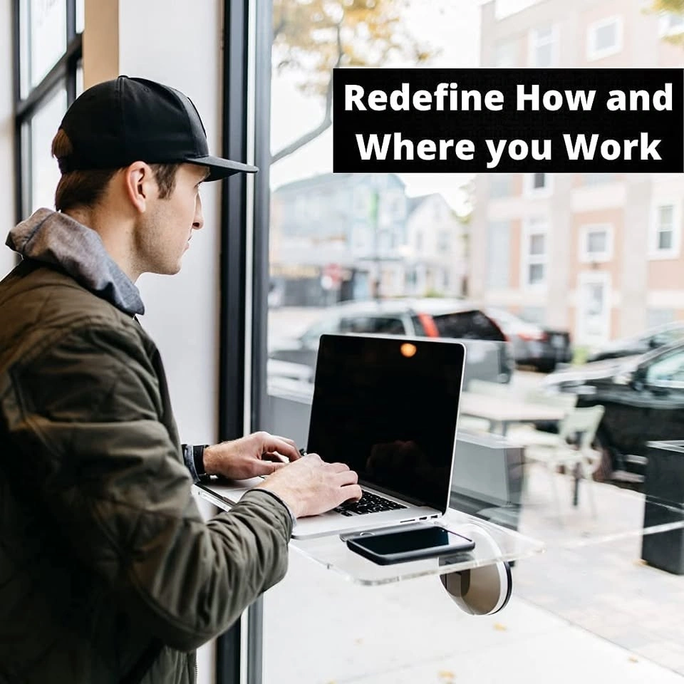 Brand new! DeskView Premium Standing Desk - Portable & Height Adjustable Tempered Glass Window-Mounted Stand Up Desk - Laptop and Computer Standing Desk - 10 Second Tool-Free Install - Polished Clear Acrylic.