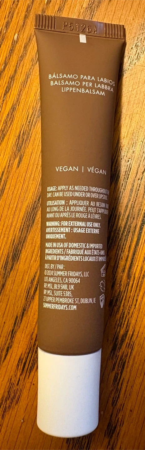 Summer Fridays Lip Butter Balm in the Hot Cocoa flavour! This balm is vegan and can be used as needed throughout the day, either under or over lipstick. It comes in a 15 g / poids net wt 0.5 oz tube 😊