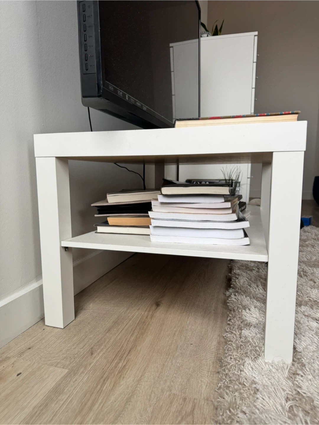 Selling a white coffee table that can also double as a TV stand in good condition. It has a shelf underneath for extra storage. Very cute design/style - I preferred it as a coffee table in my previous apartment as it adds so much to the living room! The pics of it as a tv stand don’t do it justice.