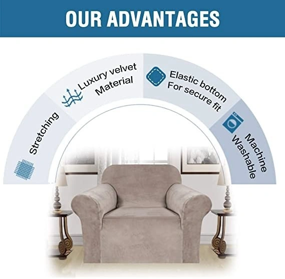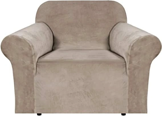 H.VERSAILTEX Stretch Velvet Armchair Cover Couch Covers 1 Cushion Chair Slipcover for Living Room Furniture Cover Crafted from Thick Comfy Rich Velour (Chair 31"-49", Taupe).