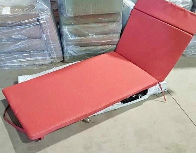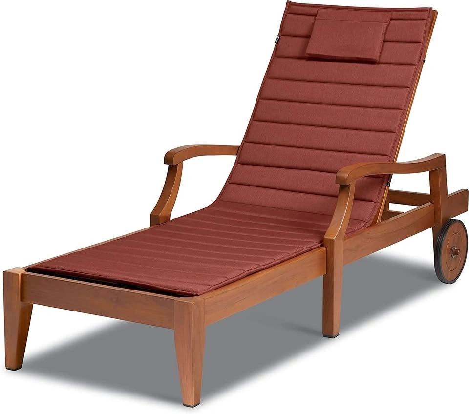 2 x Heather Red LOUNGER PATIO CUSHIONS. Measurements: BOTTOM 48X27in - BACK 29X27in. Price is $300 for the set of 2. These were custom order at $280 per piece, wholesale cost. They are for the Rebello 79.25'' Long Reclining Single Chaise.