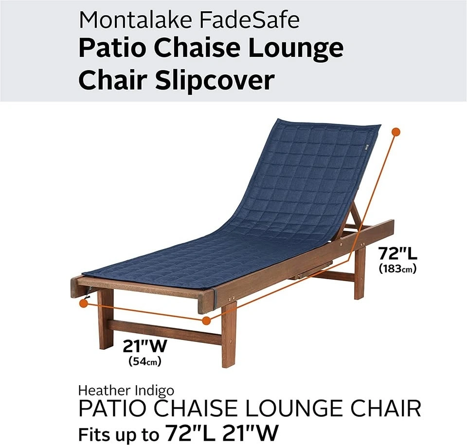 1 In Heather Fern & 1 in Heather Indigo - Classic Accessories Montlake FadeSafe Chaise Lounge Slip Cover, 72" x 21". Water-resistant padded covers. Great for pool areas! Price is $50 each.
