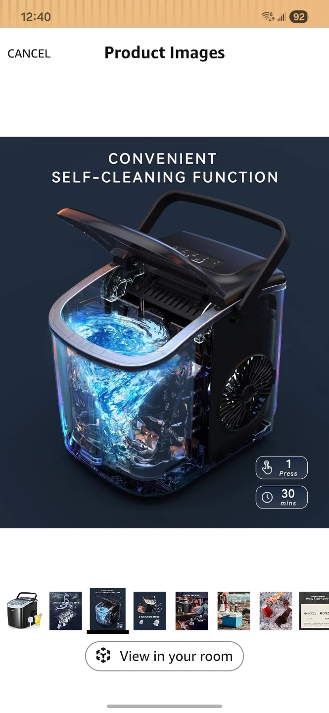 Brand New in box - UNOPENED. Looking to make ice quickly? This Ecozy portable ice maker is perfect! It makes ice in just 6 minutes. It's in black and makes bullet-shaped ice. It also has a self-cleaning function for easy maintenance