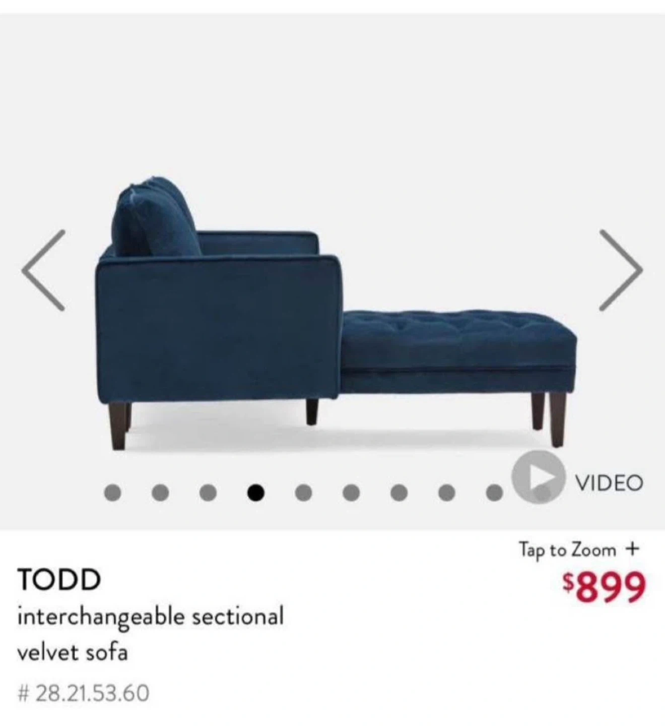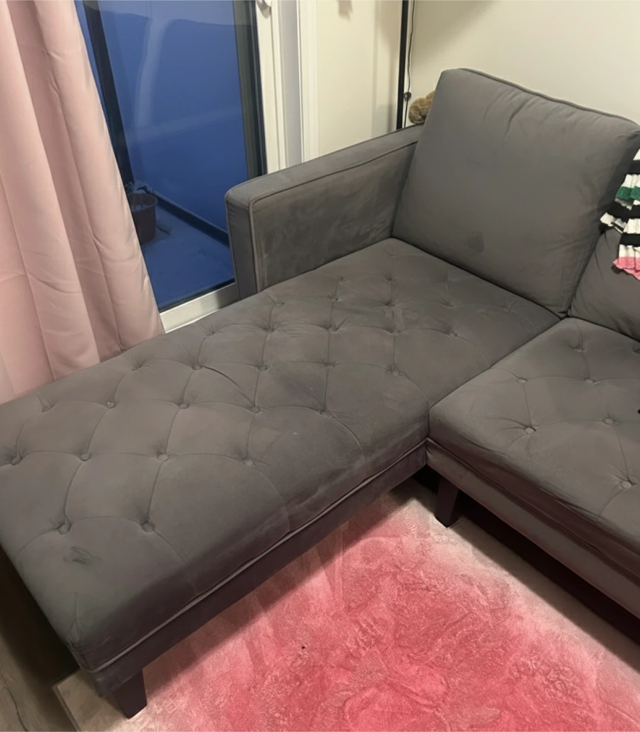 * Grey velvet sectional from Structube. Chaise is interchangeable (left or right).