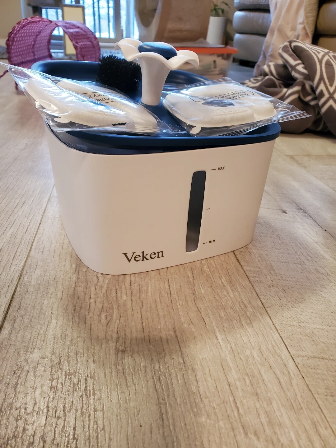 I'm selling a Veken pet fountain! It comes with replacement filters to keep the water clean and fresh for your furry friends. The fountain is designed to encourage pets to drink more, promoting better hydration and health. Easy to clean and maintain!
