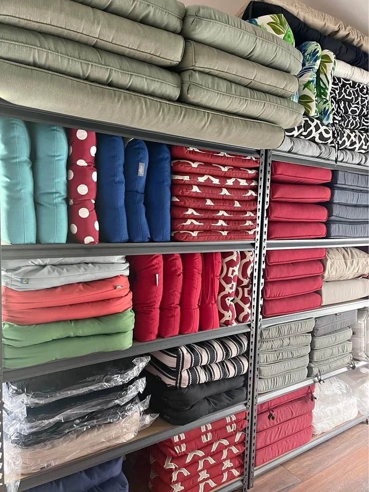 NEW high quality chair cushions left from closing business. No sets with back cushions! Selling below wholesale cost. All prices are firm! Prices are from $35 to 40 for small cushions (18” to 20”) and $60 to $150 for larger cushions, bench and lounger cushions, depending on what you need. Limited quantities, not many sets left. Not separating sets!