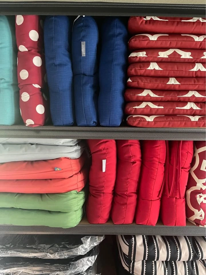 NEW high quality chair cushions left from closing business. No sets with back cushions! Selling below wholesale cost. All prices are firm! Prices are from $35 to 40 for small cushions (18” to 20”) and $60 to $150 for larger cushions, bench and lounger cushions, depending on what you need. Limited quantities, not many sets left. Not separating sets!
