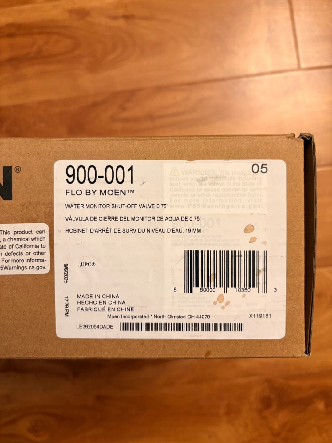 I'm selling a brand new Moen Flo water monitor and shut-off valve! It's model number 900-001 and is a water monitor shut-off valve of 0.75". It also includes the box and all the components.