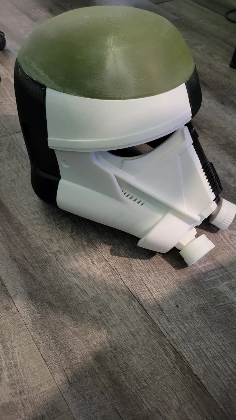 Selling a Star Wars Deathtrooper helmet. It has a green, white, and black colour scheme. Great for cosplay or display!
