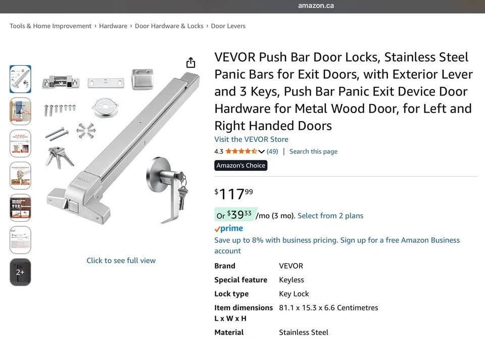 Buy & SellVEVOR Push Bar Door Locks, Stainless Steel Panic BarsVEVOR Push Bar Door Locks, Stainless Steel Panic Bars$100Brand new! Price is $100. Firm! Pick up North West Barrie. Cash!WHERE TO MEETCheck LocationView MapSELLERMonaSpringwater100 reviews0 chats·0 favorites·1 viewsSEND CHAT TO SELLERHi Mona! I’m interested in your listing.Hi Mona! I’m interested in your listing.Get the Karrot app to chatSign In to chat