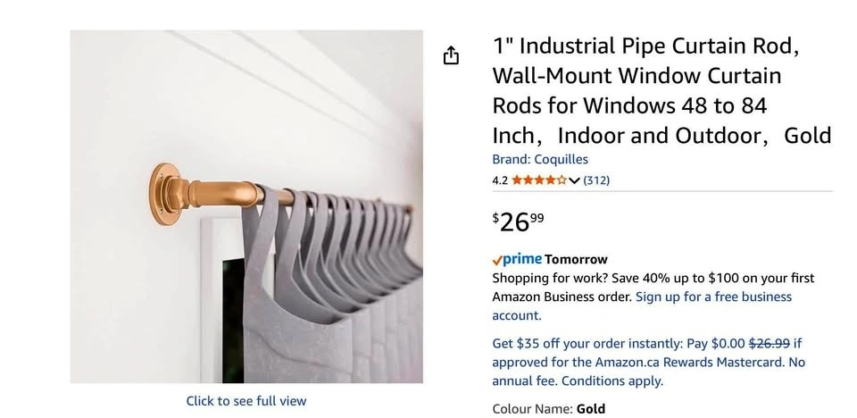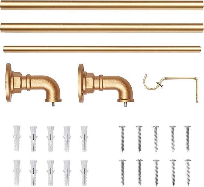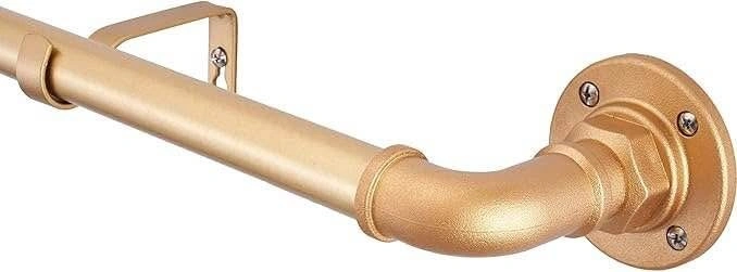 1" Industrial Pipe Curtain Rod,Wall-Mount Window Curtain Rods for Windows 48 to 84 Inch,Indoor and Outdoor,Gold