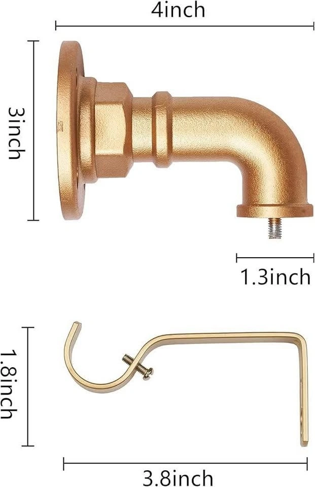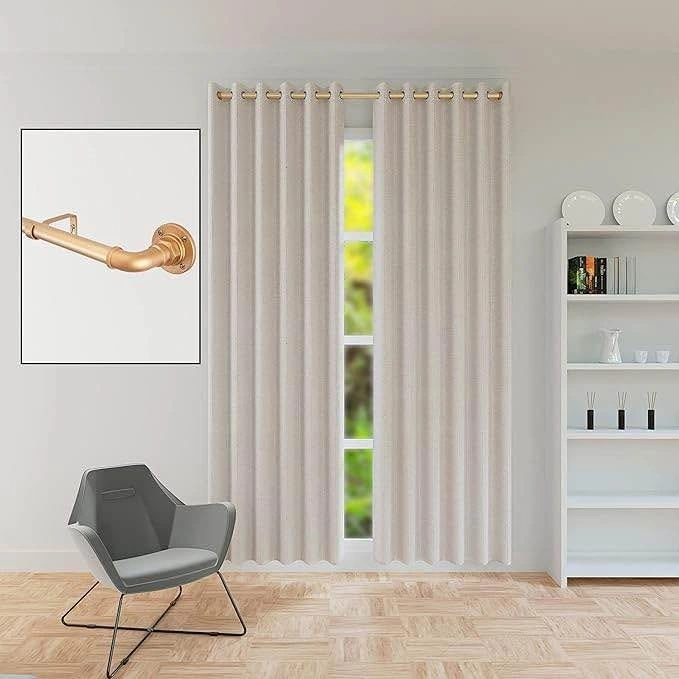 1" Industrial Pipe Curtain Rod,Wall-Mount Window Curtain Rods for Windows 48 to 84 Inch,Indoor and Outdoor,Gold