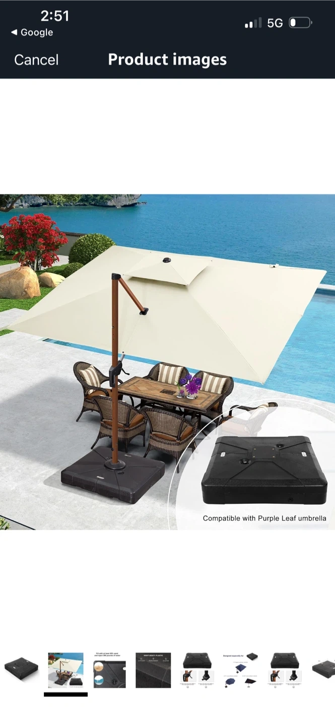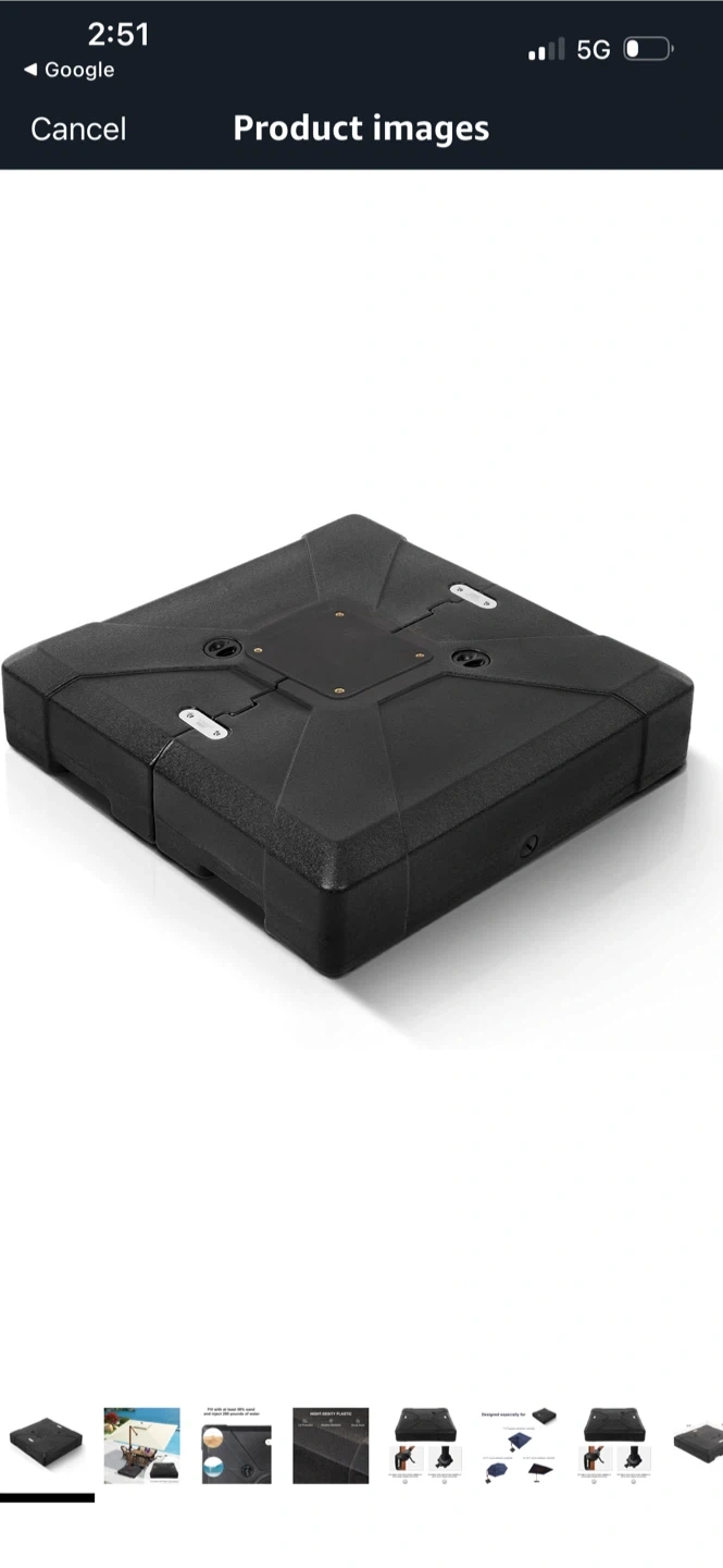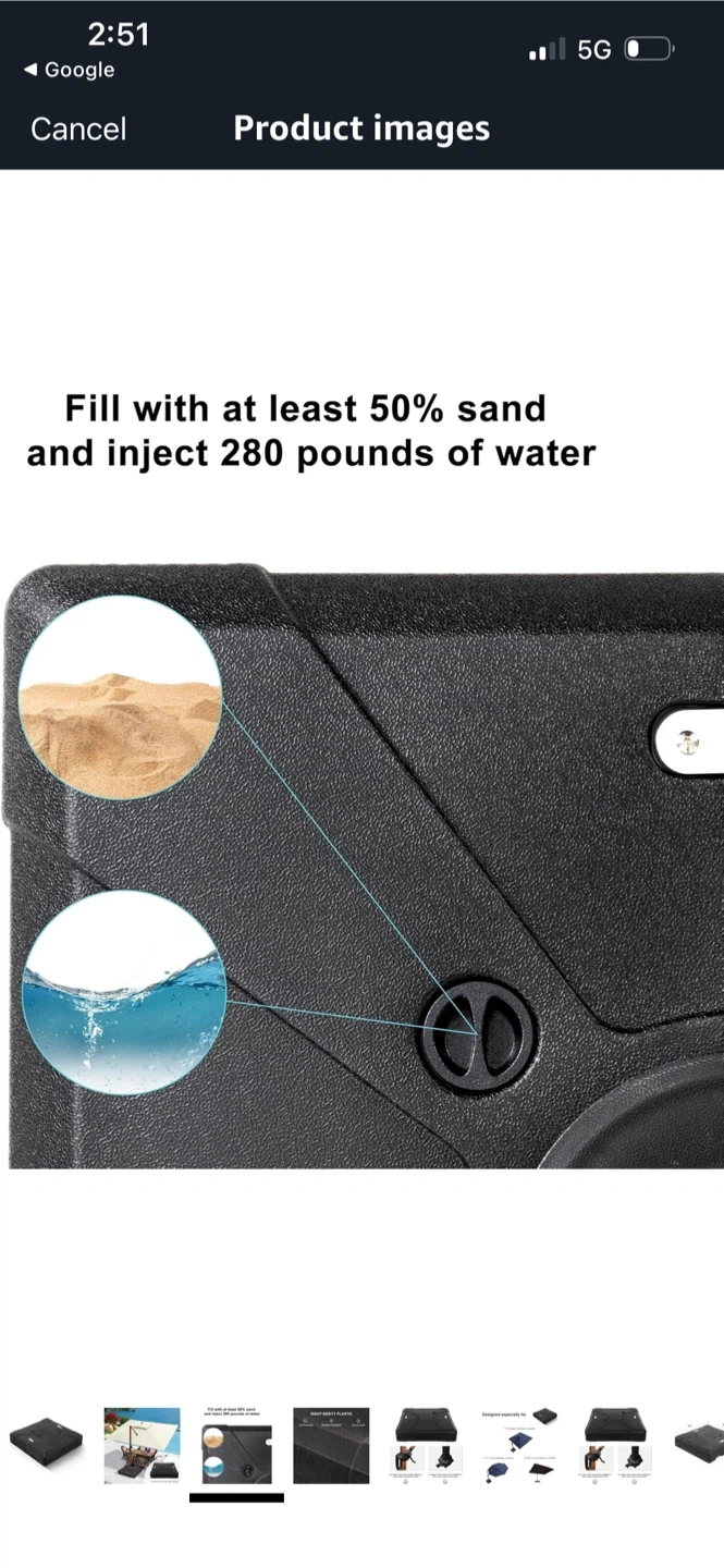 This patio umbrella base is ready to keep your outdoor space shaded and stylish! It measures 38.9 x 38.9 x 8 inches and can be filled with at least 50% sand and 280 pounds of water for extra stability. Made with high-density plastic, it's UV protected, weather-resistant, and has a sturdy build