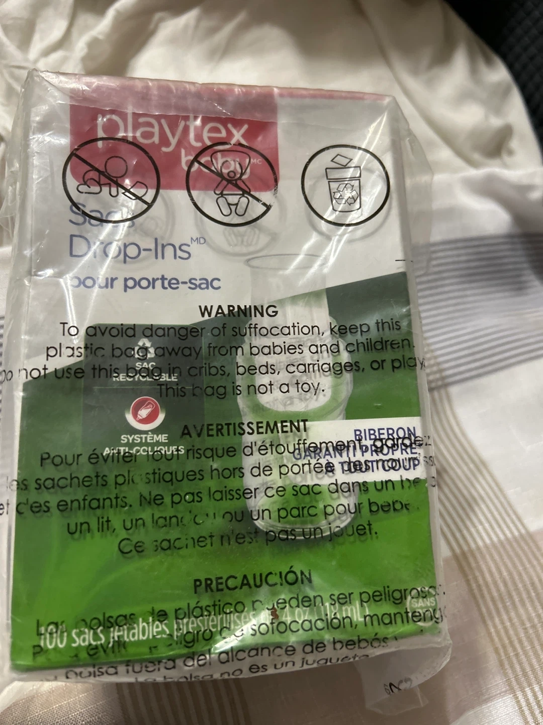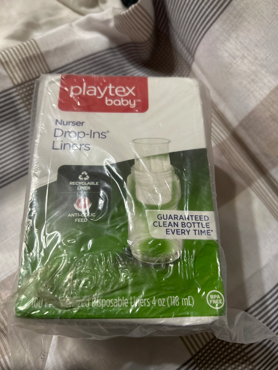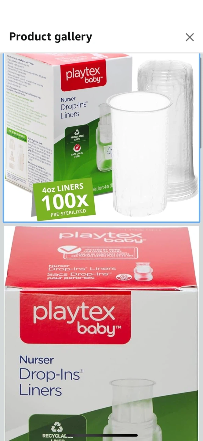 Selling a new pack of Playtex Baby Nurser Drop-Ins Liners 4oz(118mL)!These are disposable liners for baby bottles that make cleanup easy and reduce air intake for gas-free feeding. Each liner is pre-sterilized and made with recyclable materials. The pack contains 100 liners.!