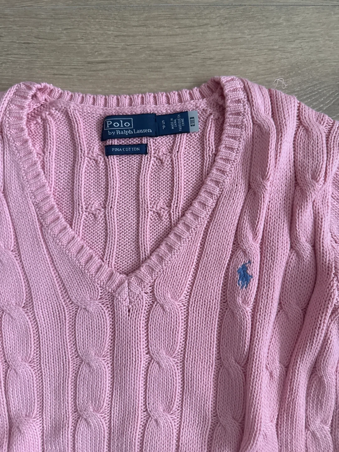 A lovely pink cable knit sweater from Ralph Lauren! It's a size small and made of 100% cotton. Perfect for adding a pop of colour to your wardrobe. Its never worn.