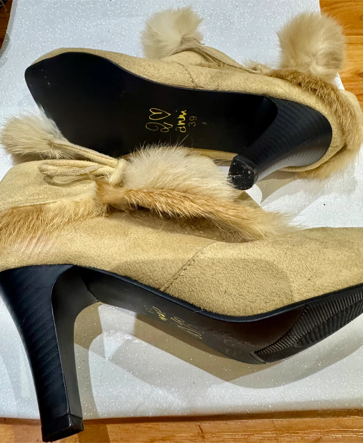 Cute Cynari ankle boots in a neutral beige colour! They feature a stylish heel and fun fur detailing. Size 9.