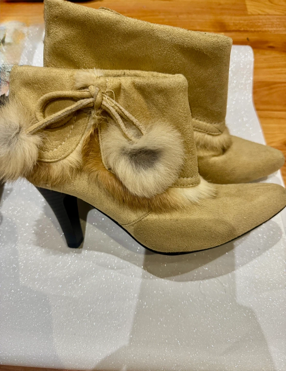Cute Cynari ankle boots in a neutral beige colour! They feature a stylish heel and fun fur detailing. Size 9.