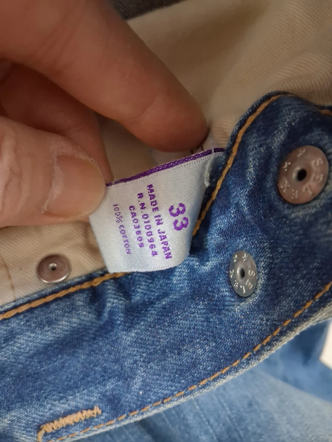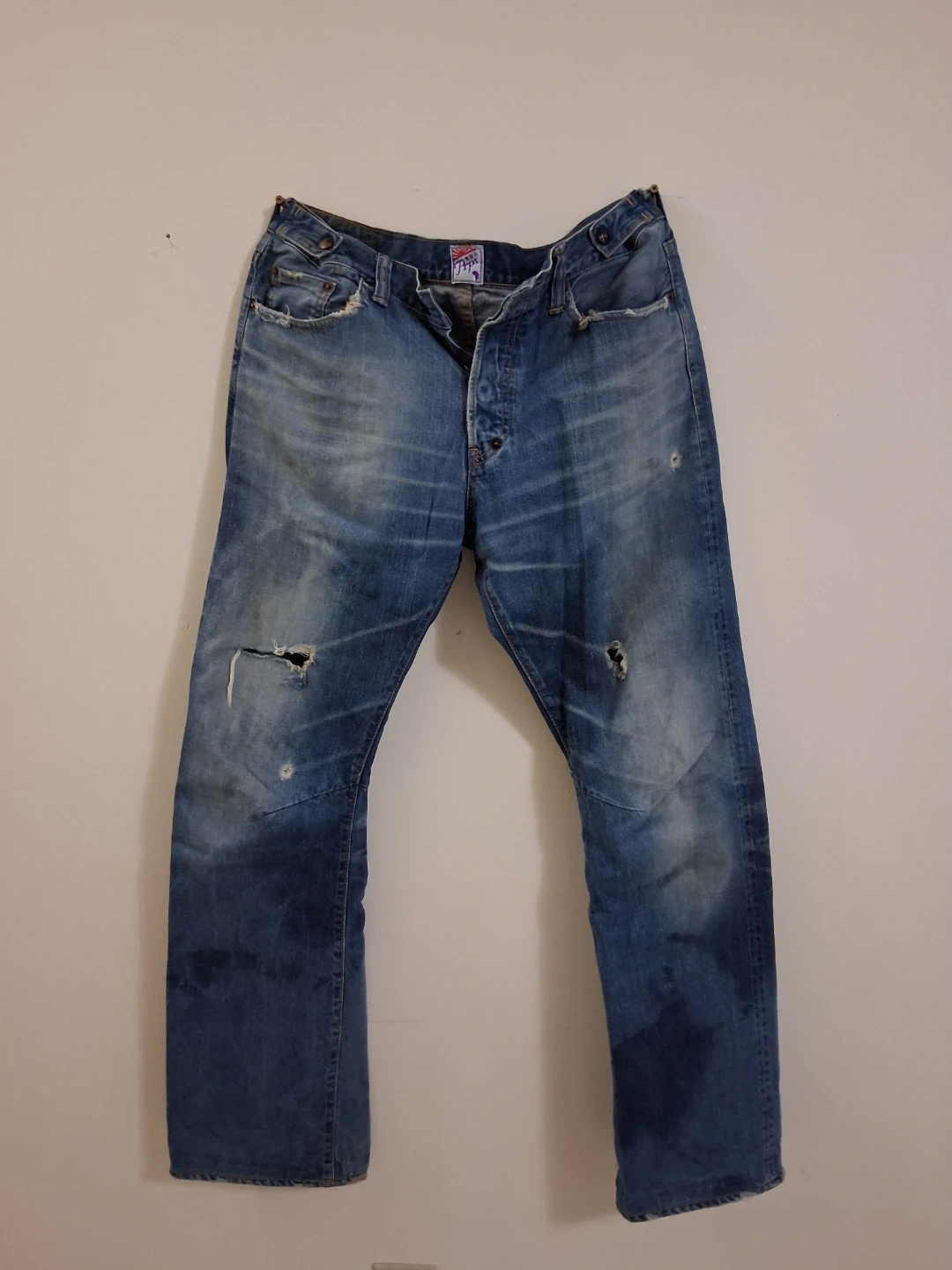Selling a pair of PRPS jeans in size 33. They are made in Japan and are 100% cotton. They have a worn look with some distressing.